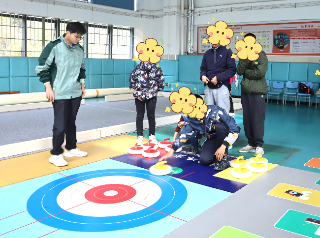 图:广州市社会福利院举办“科普零距离,你我共精彩”科普开放日活动,开展旱地冰壶运动体验