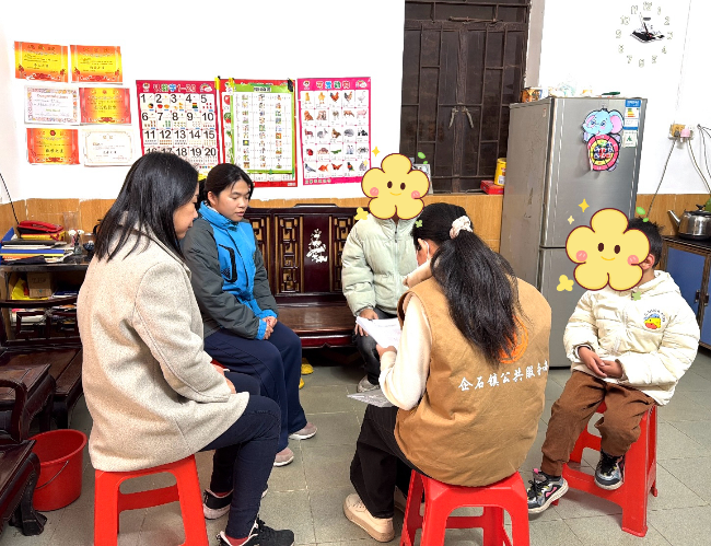 图:在线上培训后,东莞市企石镇铁岗村儿童主任黄秀华到孤独症儿童家庭开展康复服务政策宣传