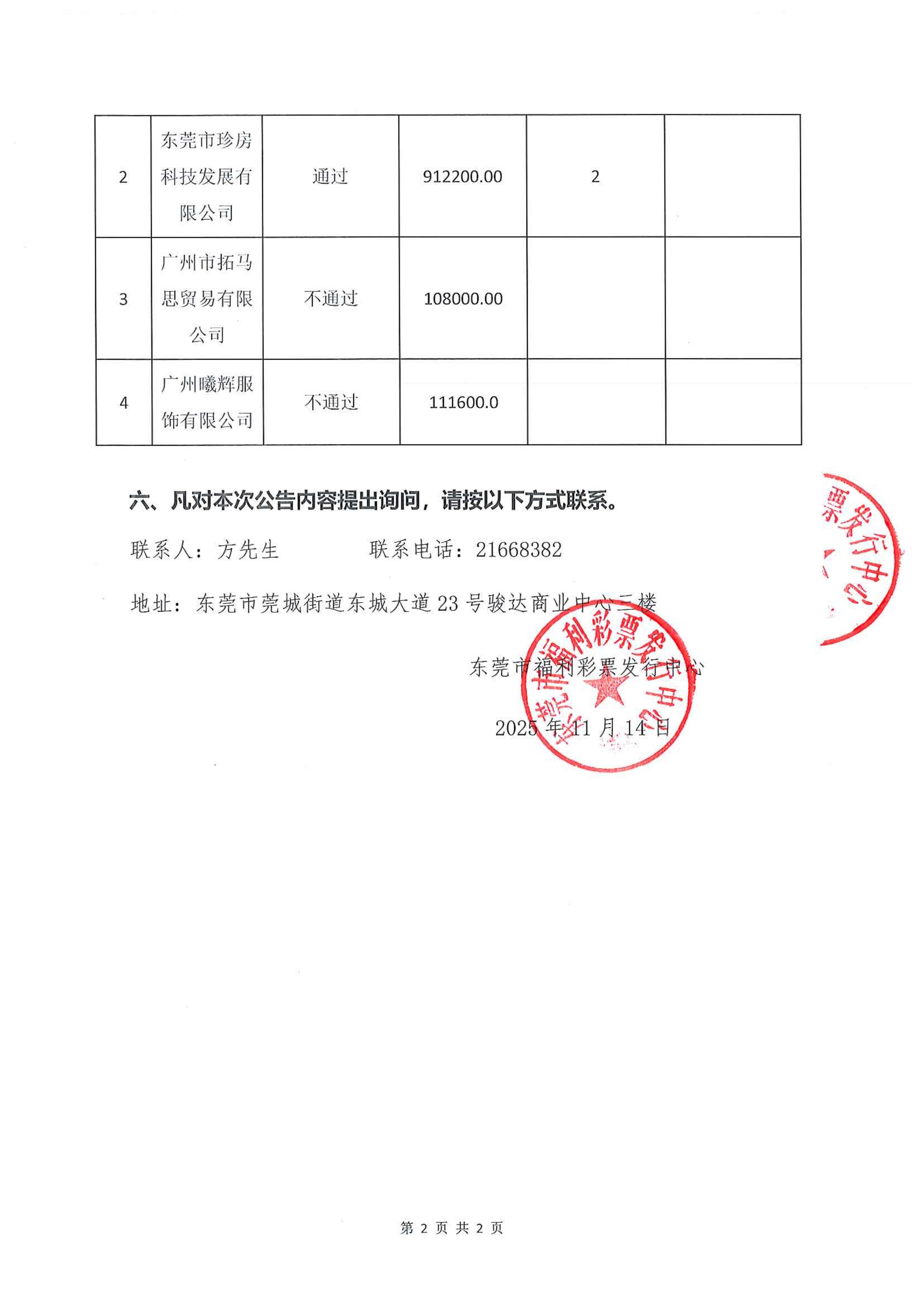 东莞市福利彩票发行中心关于福彩销售场所人员工作服项目选取供应商成交结果公告