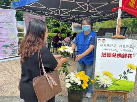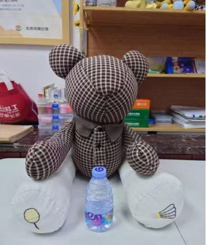 今年清明节期间,市殡仪馆社工开展“纸钱兑换鲜花”活动 【哀伤辅导】 全程陪伴治丧,帮丧属走过人生至暗时刻 2024年12月的一天,麦小姐怀着沉重的心情来到东莞市殡仪馆,处理父亲去世后的相关事宜。麦小姐的父亲生前是一名尽职尽责的警察,非常喜欢打羽毛球。 在父亲的火化仪式完成之后,麦小姐在殡仪馆的休息区无意间瞥见了哀伤辅导社工张贴的一张宣传海报,海报上印着“思念熊”的字样。这个温馨的活动立刻吸引了麦小姐的注意,她主动联系社工,表达了自己深切的愿望——希望将父亲留下的衣物制作成一只“思念熊”。 社工魏淑敏回忆称,收到麦小姐的委托后,项目社工团队立刻与她进行了详尽的交流。麦小姐提出,自己从小经常和父亲一起打羽毛球,希望定制的“思念熊”可以融入羽毛球的元素。 社工团队几经商议,确定了最终的设计方案。在“思念熊”的制作过程中,社工不仅将羽毛球的元素融入玩偶的设计中,还选取了逝者生前最喜爱穿的衬衫作为“思念熊”的主体。