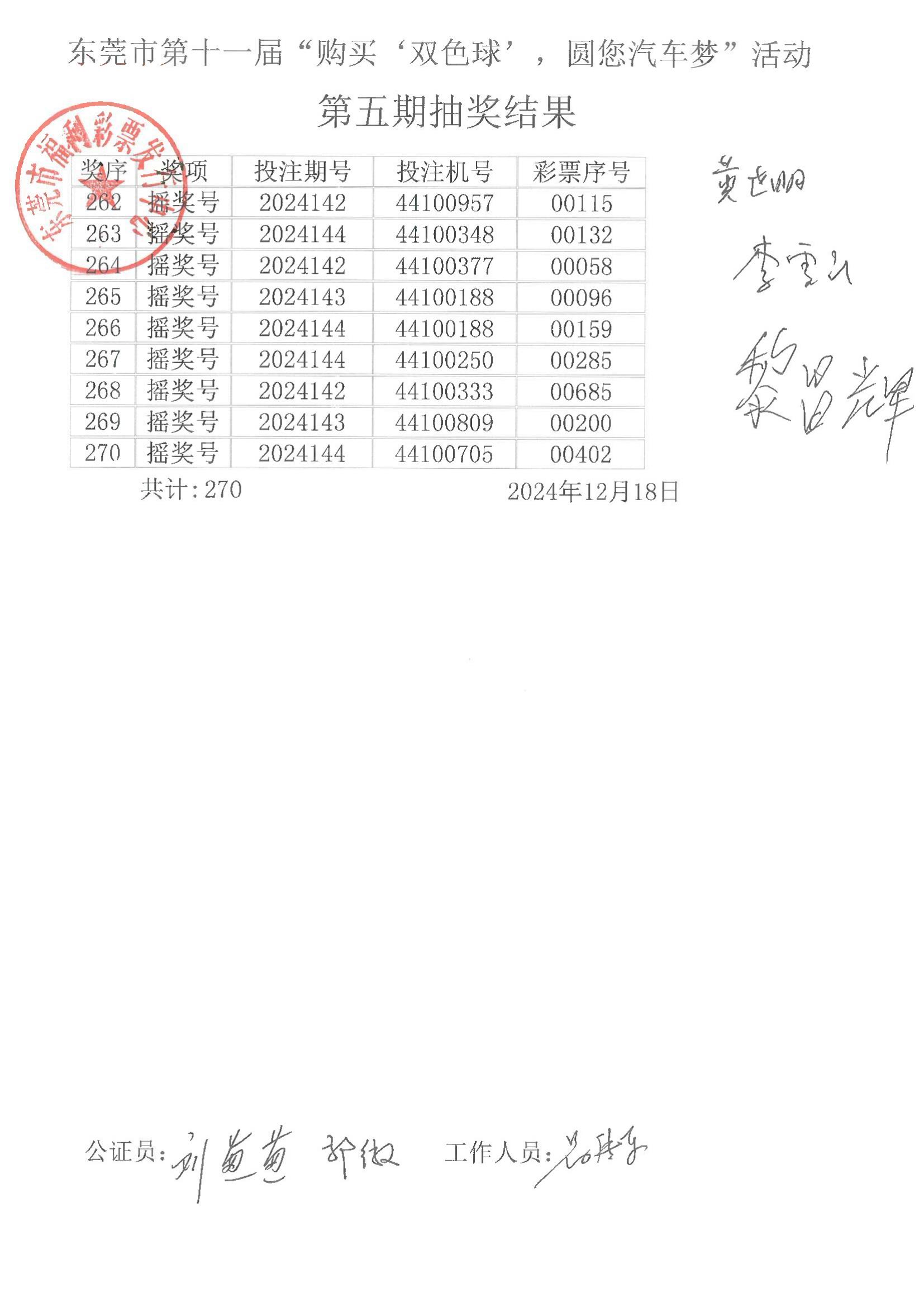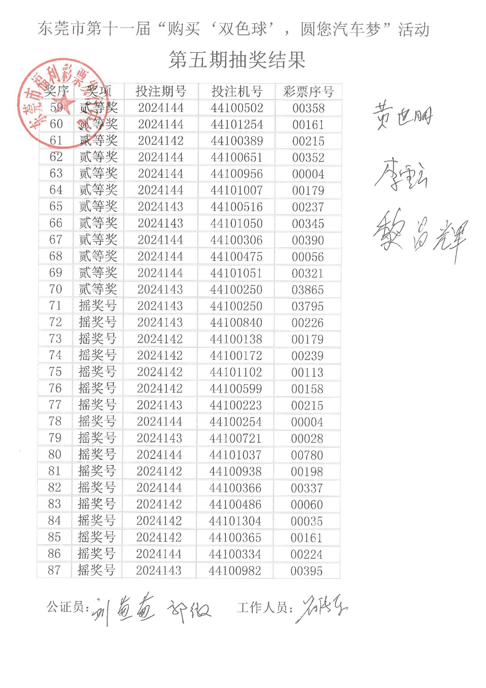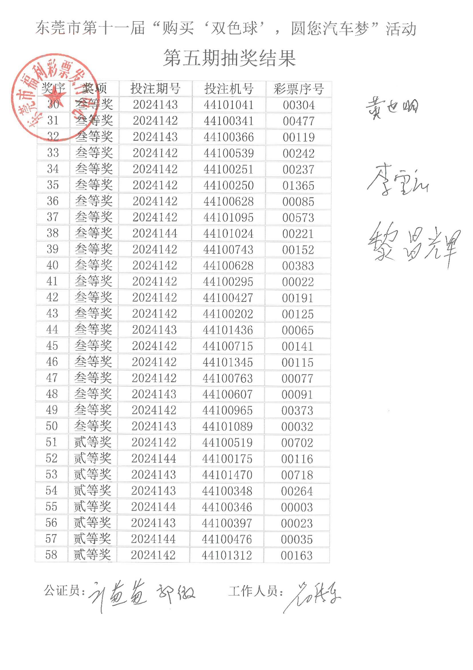 东莞市第十一届“购买‘双色球’,圆您汽车梦”活动第五期抽奖结果