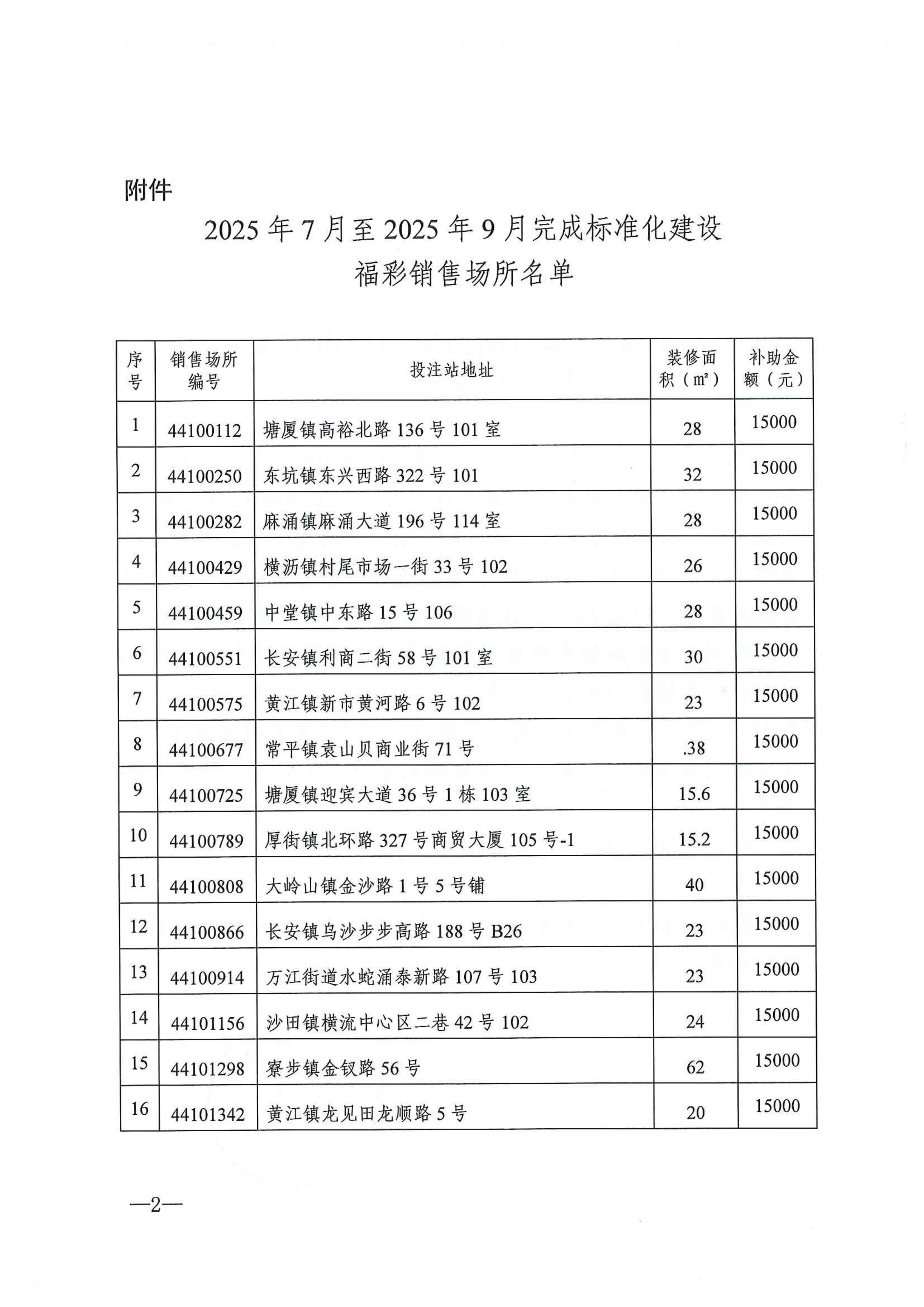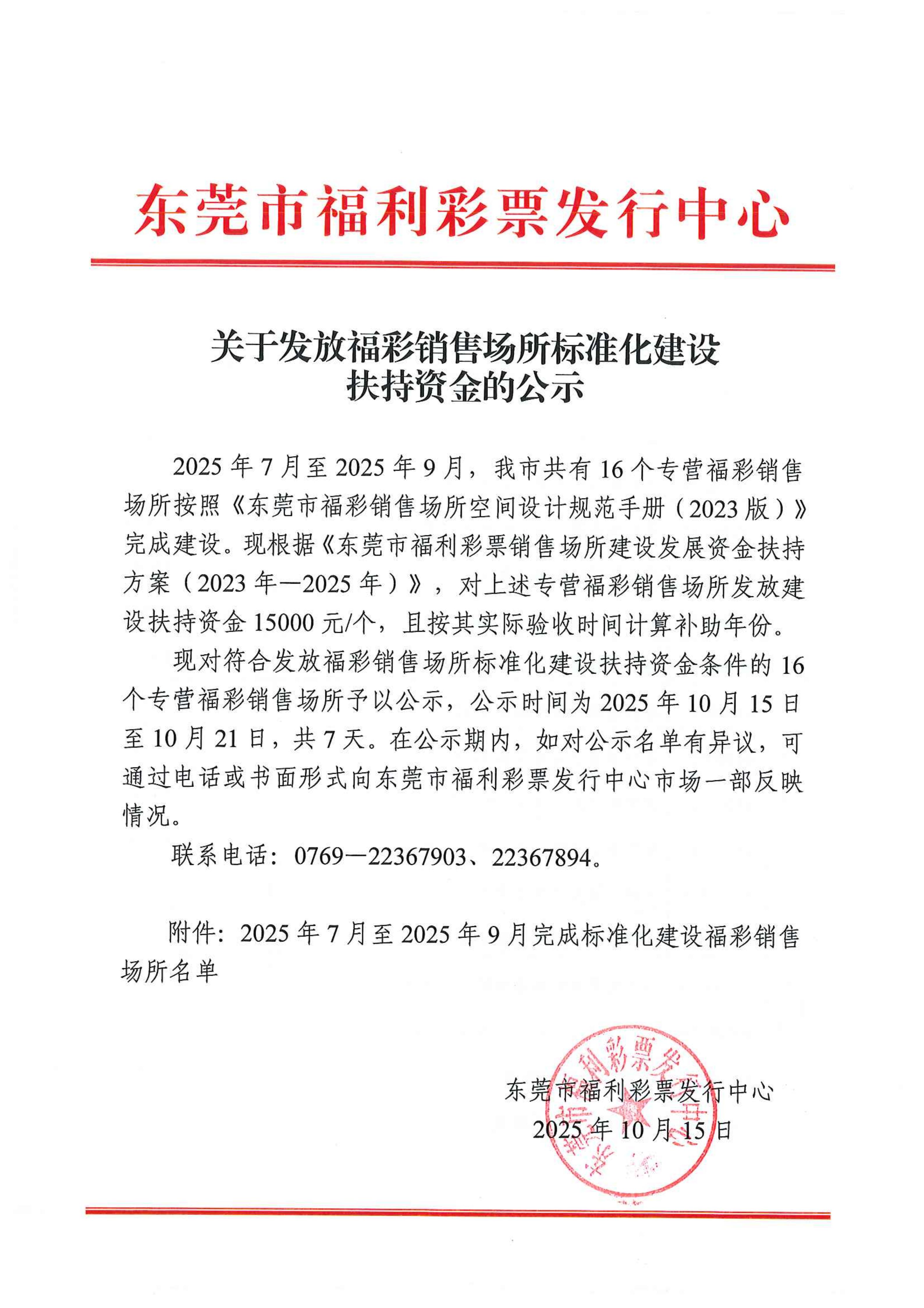 东莞市福利彩票发行中心关于发放福彩销售场所标准化建设扶持资金的公示